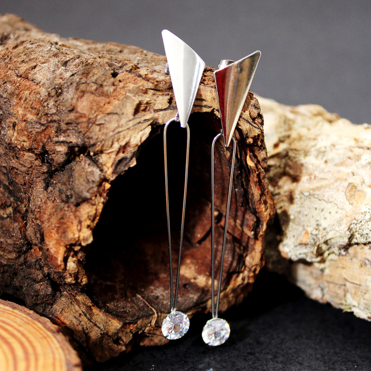 O Brinco Chandra Noxie é uma peça que une o design arquitetônico à sofisticação clássica. Sua base em formato de triângulo invertido sustenta uma zircônia de 8mm, criando um contraste visual entre a força das linhas retas e a radiância da pedra lapidada. É o acessório ideal para quem busca uma peça "statement" que transmita personalidade e modernidade.