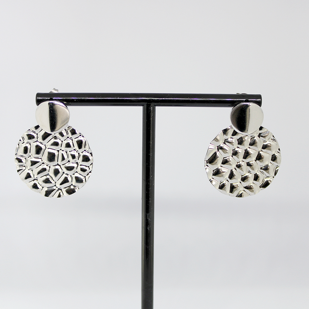 O Brinco Gaia é uma verdadeira obra de arte geométrica. A combinação da "moeda" com movimento ondulado e o círculo com textura craquelada cria um jogo de luzes e sombras fascinante, garantindo um visual moderno, artístico e cheio de personalidade.