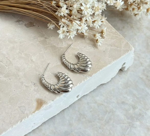 Valorize seu visual com o poder do design orgânico. Adicione a Argola Croissant Noxie ao seu carrinho!