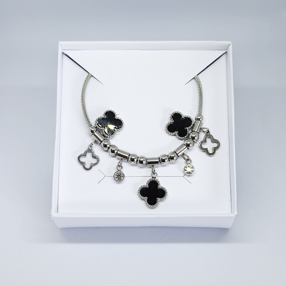 O Conjunto Aine Brinco + Colar de Aço Inox Trevo Preto e Zircônias da Noxie é a fusão perfeita entre o simbolismo da sorte e o design contemporâneo. Com uma corrente no estilo serpente (snake chain), conhecida pelo seu brilho contínuo e caimento fluido na pele, esta peça é um acessório essencial para mulheres que buscam elegância sem abrir mão da praticidade.