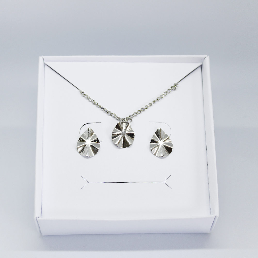 O Conjunto Nerthus é a tradução da sofisticação contemporânea. Com um design inspirado nas formas naturais e fluidas, tanto o brinco quanto o colar apresentam um acabamento "amassado" (ou craquelado) que reflete a luz de ângulos variados, criando um efeito luminoso deslumbrante e único no colo e no rosto.